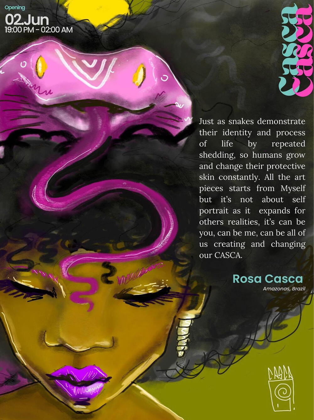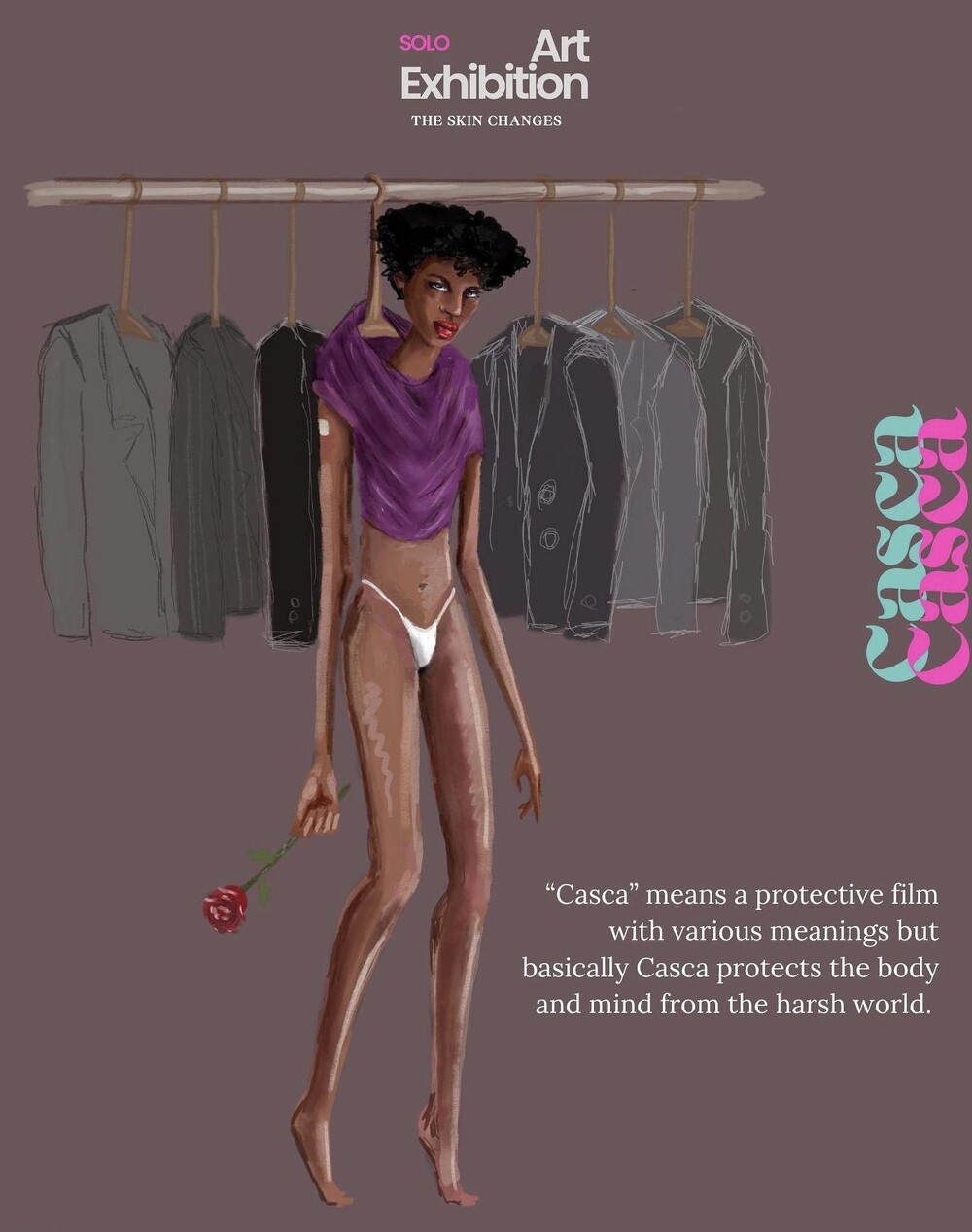"Casca, The skin changes 변태“에서 우리는 그녀의 창작물을 통해 내면과 외면, 현실과 초현실, 이승과 사후세계를 탈피한 후다시 유기적으로 연결되는 과정을 보게 될 것입니다.