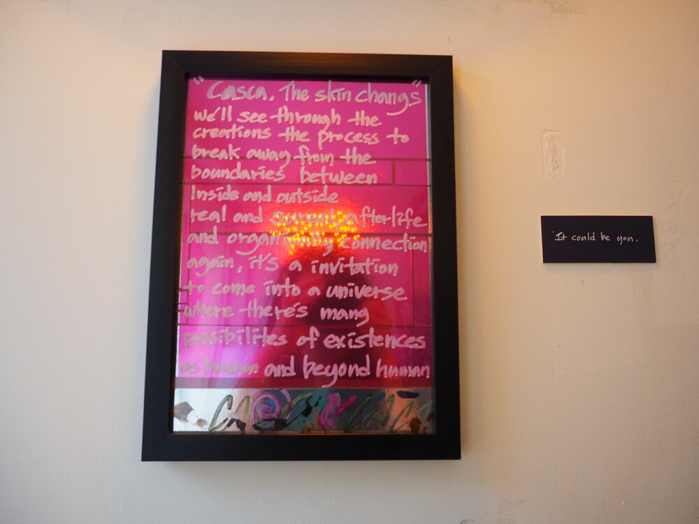 "Casca, The skin changes 변태“에서 우리는 그녀의 창작물을 통해 내면과 외면, 현실과 초현실, 이승과 사후세계를 탈피한 후다시 유기적으로 연결되는 과정을 보게 될 것입니다.