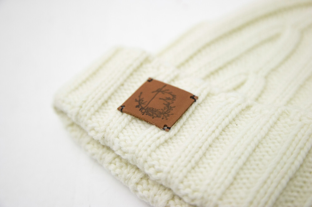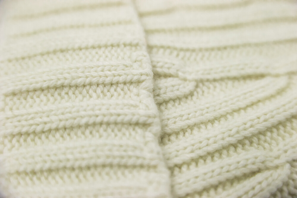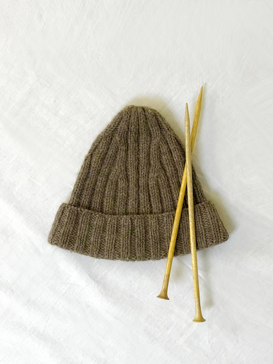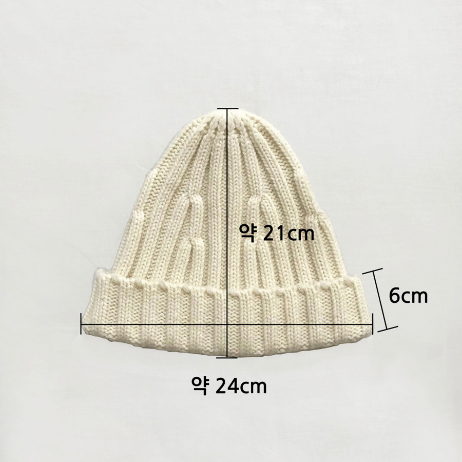 일반적으로 많이 보이는 비니와는 게이지 gage와 조직이 다릅니다. 손 뜨개로 짠 느낌에 가깝도록 입체감 있는 3게이지를 택하였고 비니 위쪽의 형태를 자연스럽게 줄여가기 위해 편직 라인에 변화를 주어 콧수를 줄였습니다.
