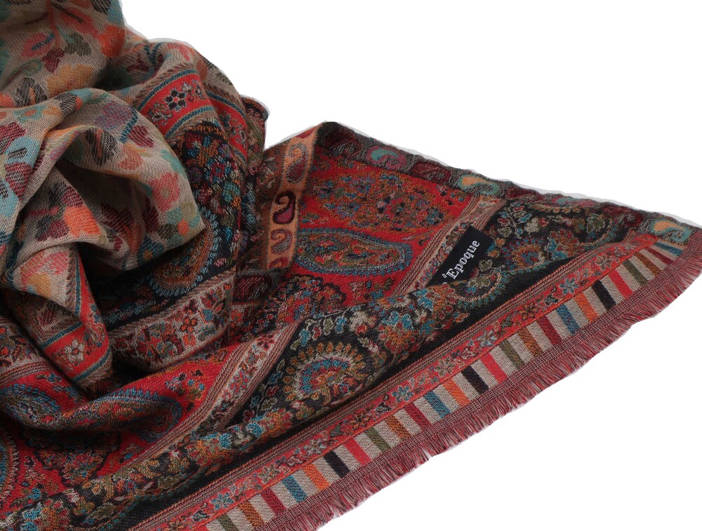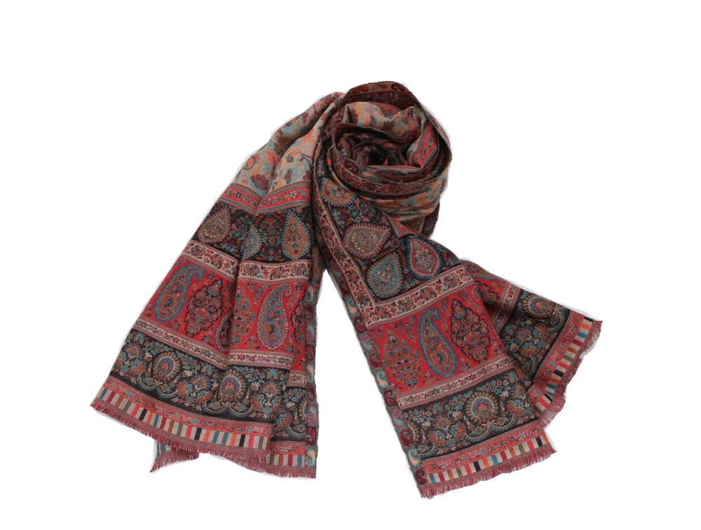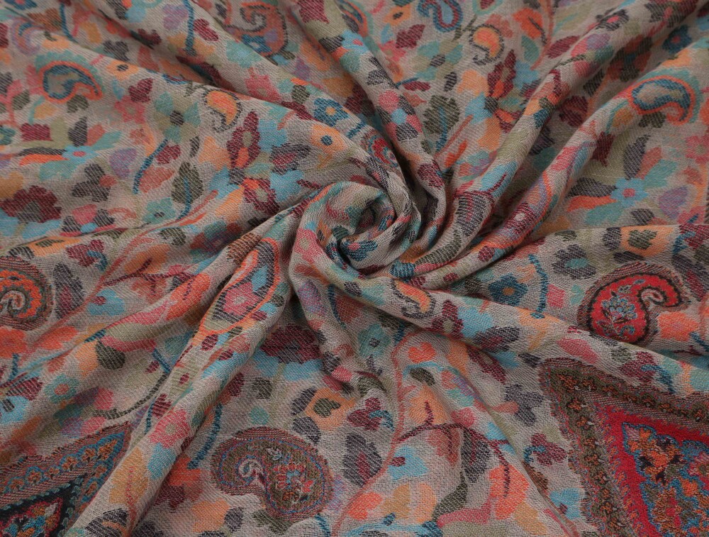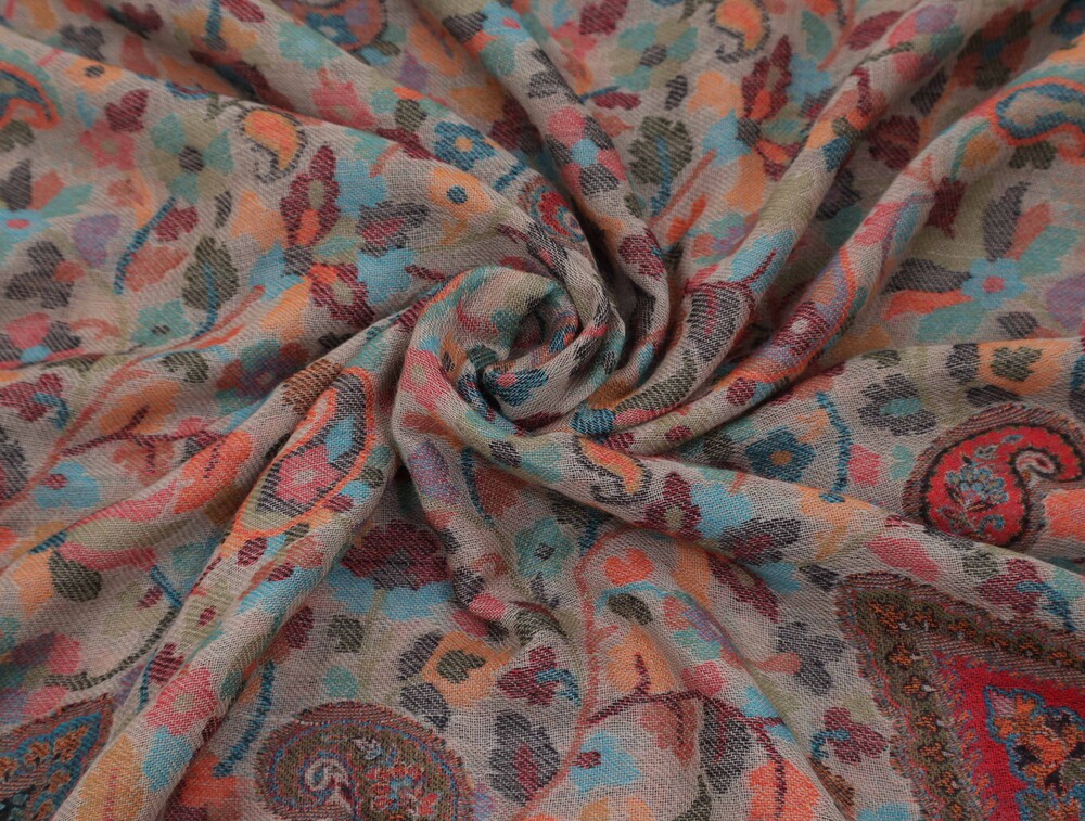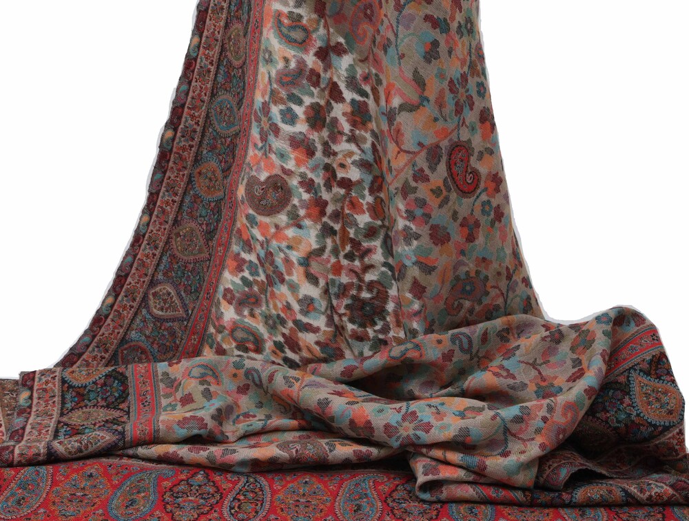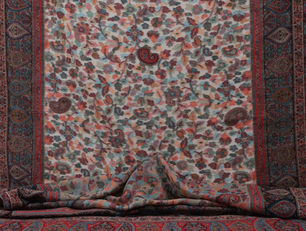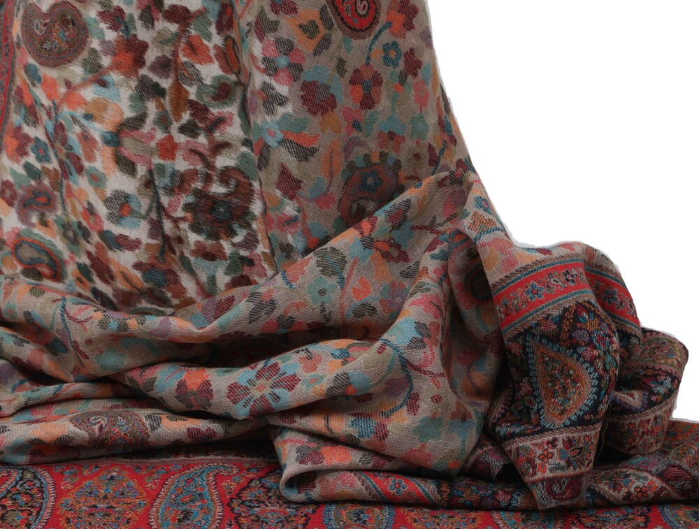 Modern, machine-made Jamawar prints, produced in cities such as Kashmir and other parts of Pakistan,