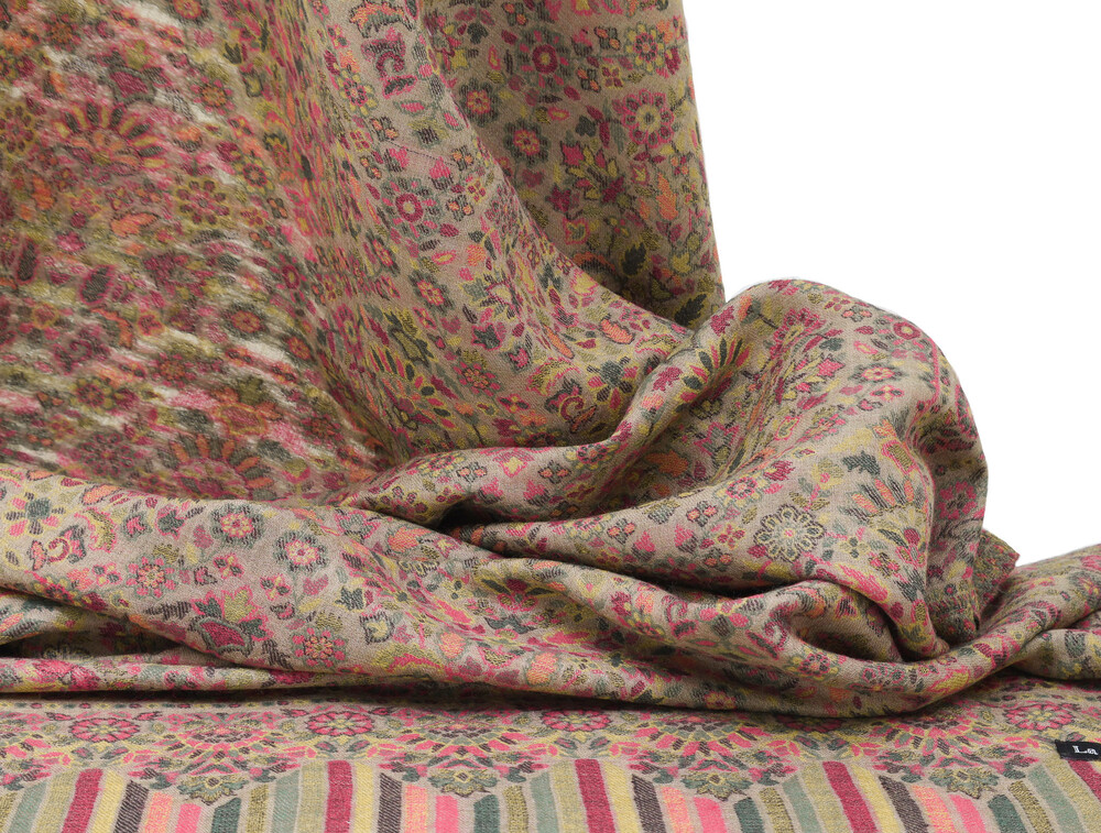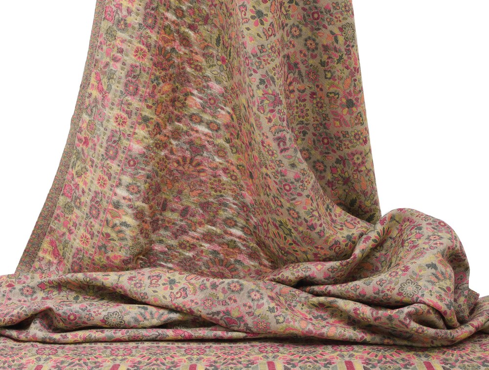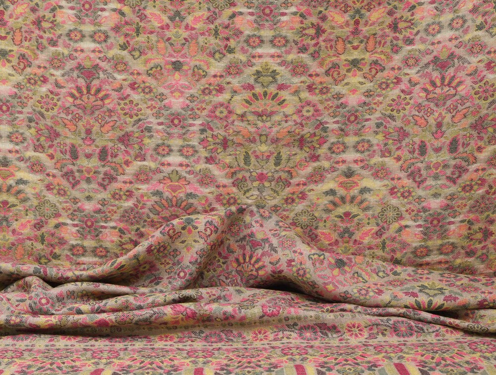 Modern, machine-made Jamawar prints, produced in cities such as Kashmir and other parts of Pakistan,