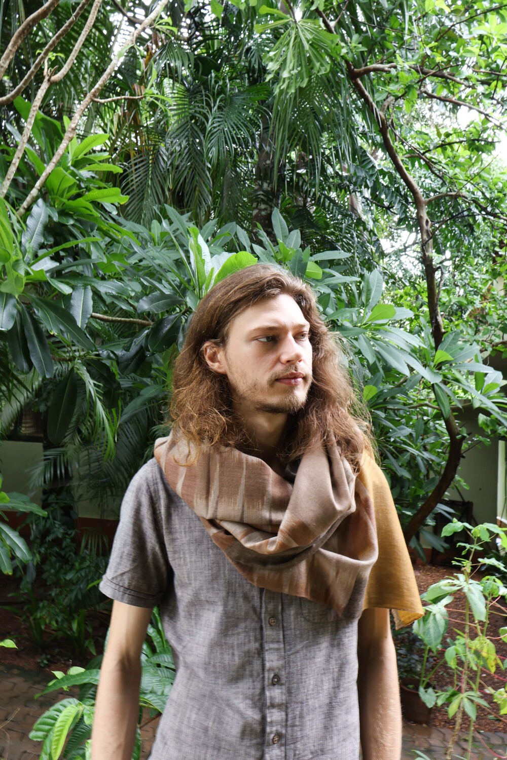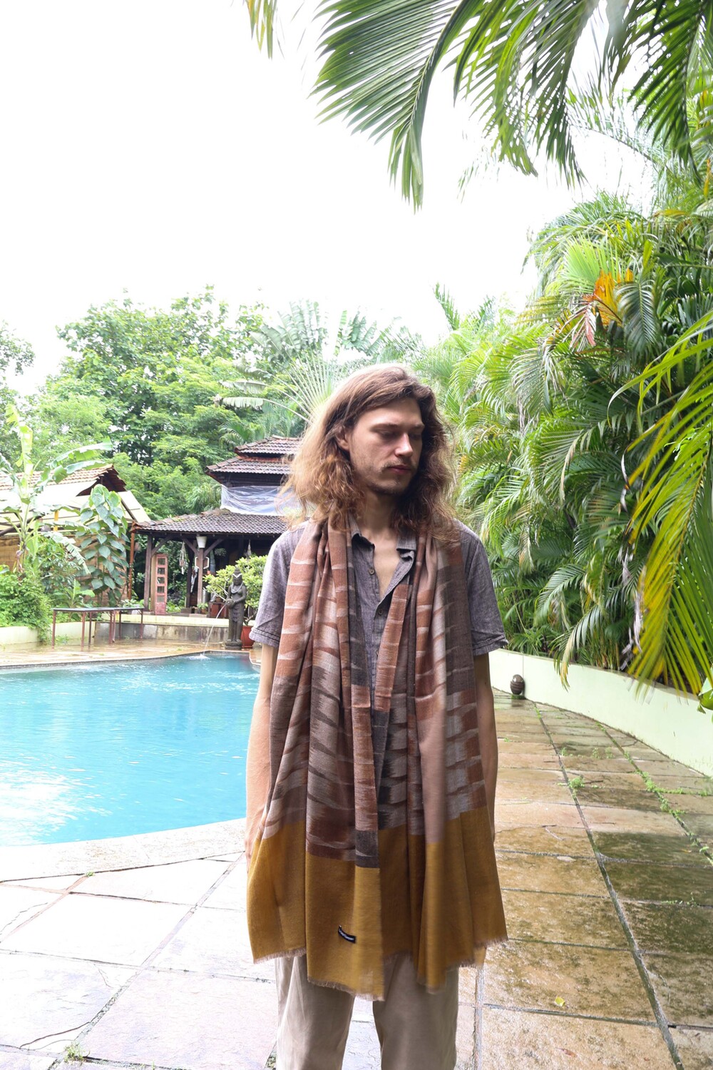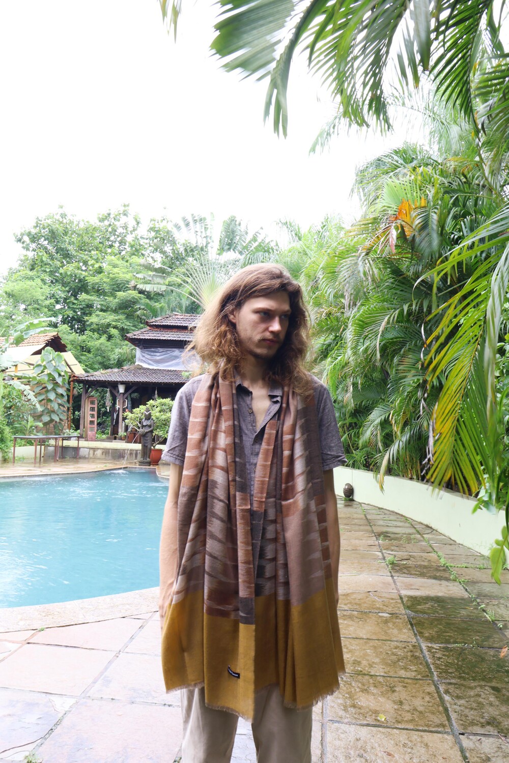 여러 컬러로 천연 염색된 턱과 목부위의 털을 마치 수를 놓듯이 컬러를 바꾸어가며 직조한 예술 작품같은 제품입니다. 씨실과 날실의 환상적인 조화가 만들어내는 아름다움이 감동을 안겨줍니다.