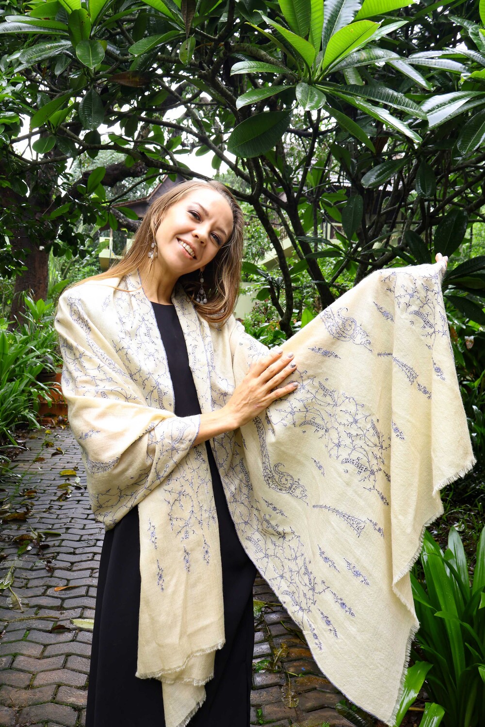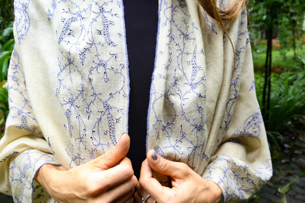 고급 라인 파시미나에 수를 놓은 제품입니다