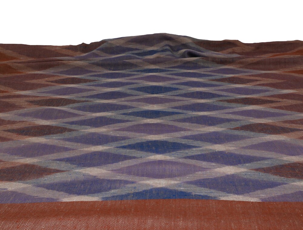 여러 컬러로 천연 염색된 턱과 목부위의 털을 마치 수를 놓듯이 컬러를 바꾸어가며 직조한 예술 작품같은 제품입니다. 씨실과 날실의 환상적인 조화가 만들어내는 아름다움이 감동을 안겨줍니다.