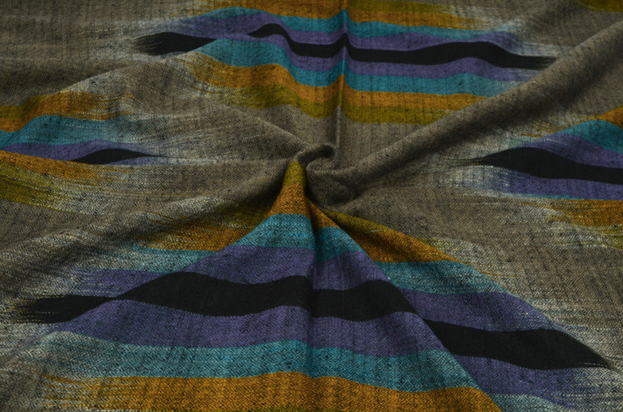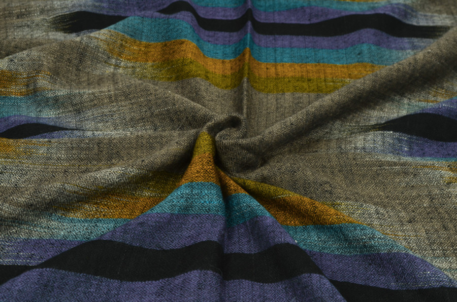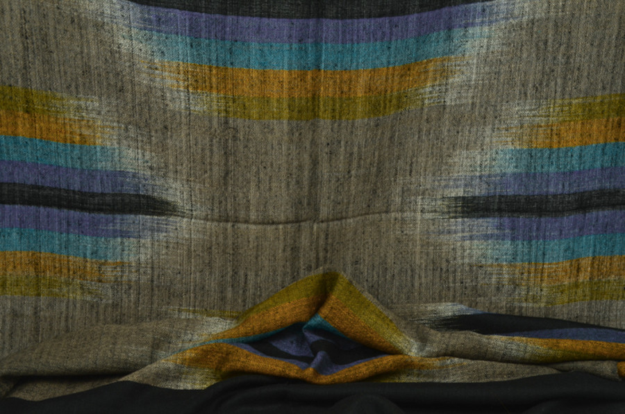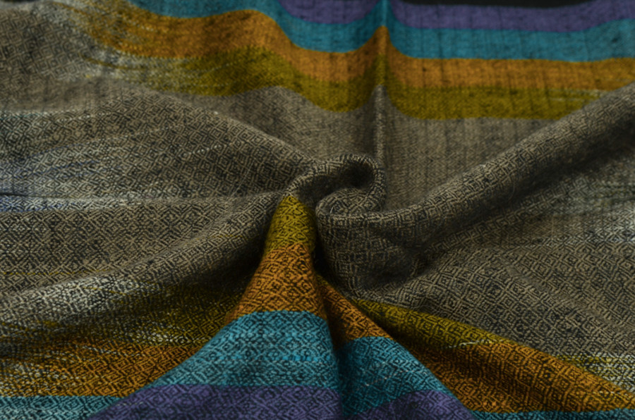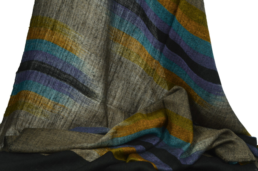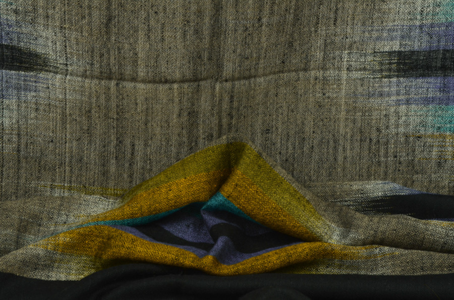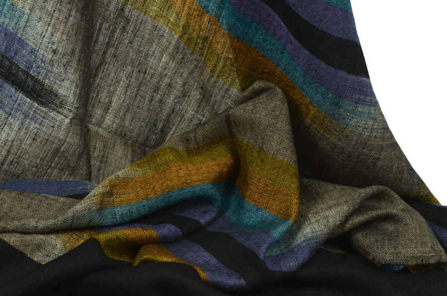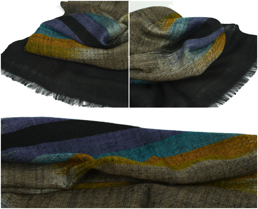 여러 컬러로 천연 염색된 턱과 목부위의 털을 마치 수를 놓듯이 컬러를 바꾸어가며 직조한 예술 작품같은 제품입니다. 씨실과 날실의 환상적인 조화가 만들어내는 아름다움이 감동을 안겨줍니다.