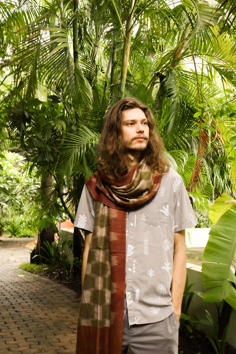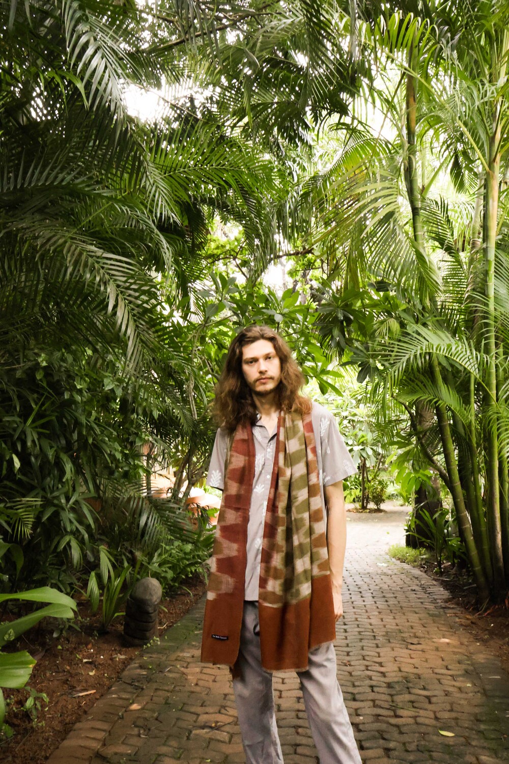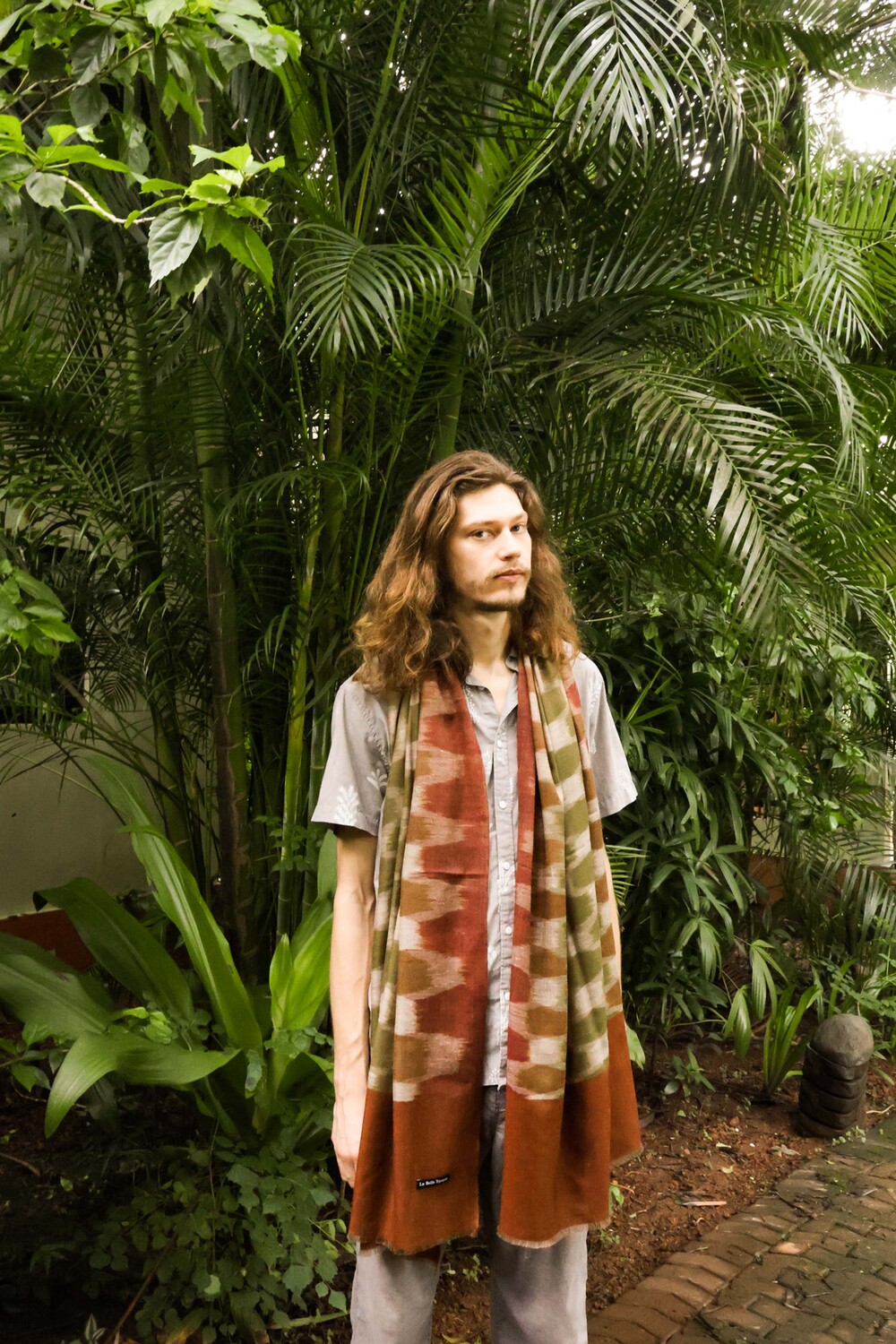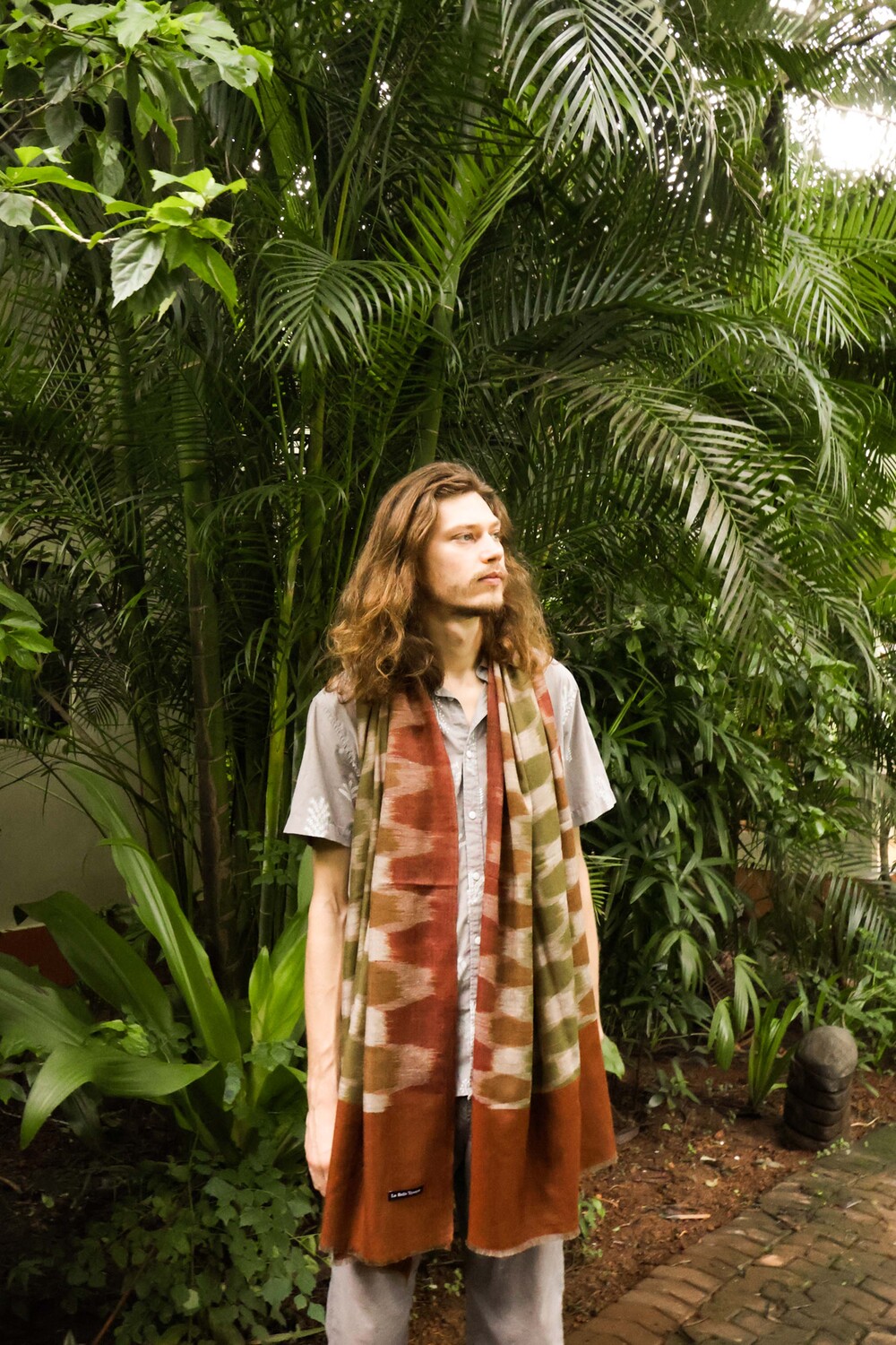 여러 컬러로 천연 염색된 턱과 목부위의 털을 마치 수를 놓듯이 컬러를 바꾸어가며 직조한 예술 작품같은 제품입니다. 씨실과 날실의 환상적인 조화가 만들어내는 아름다움이 감동을 안겨줍니다.