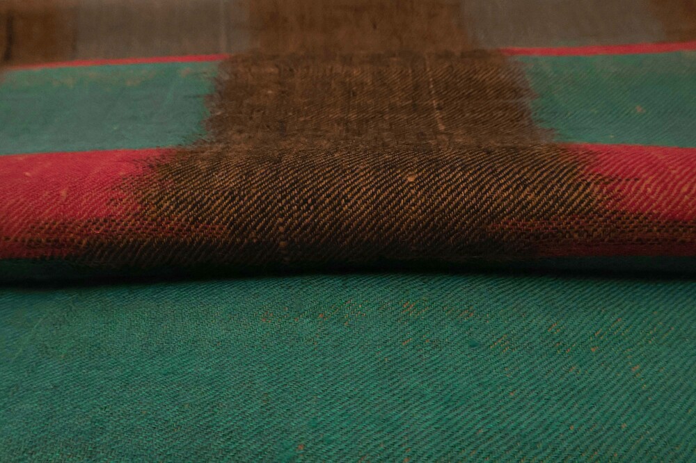 여러 컬러로 천연 염색된 턱과 목부위의 털을 마치 수를 놓듯이 컬러를 바꾸어가며 직조한 예술 작품같은 제품입니다. 씨실과 날실의 환상적인 조화가 만들어내는 아름다움이 감동을 안겨줍니다.
