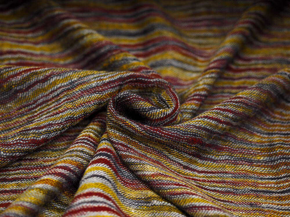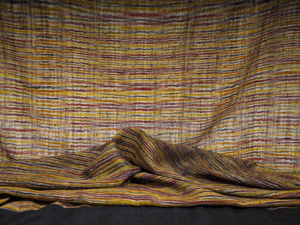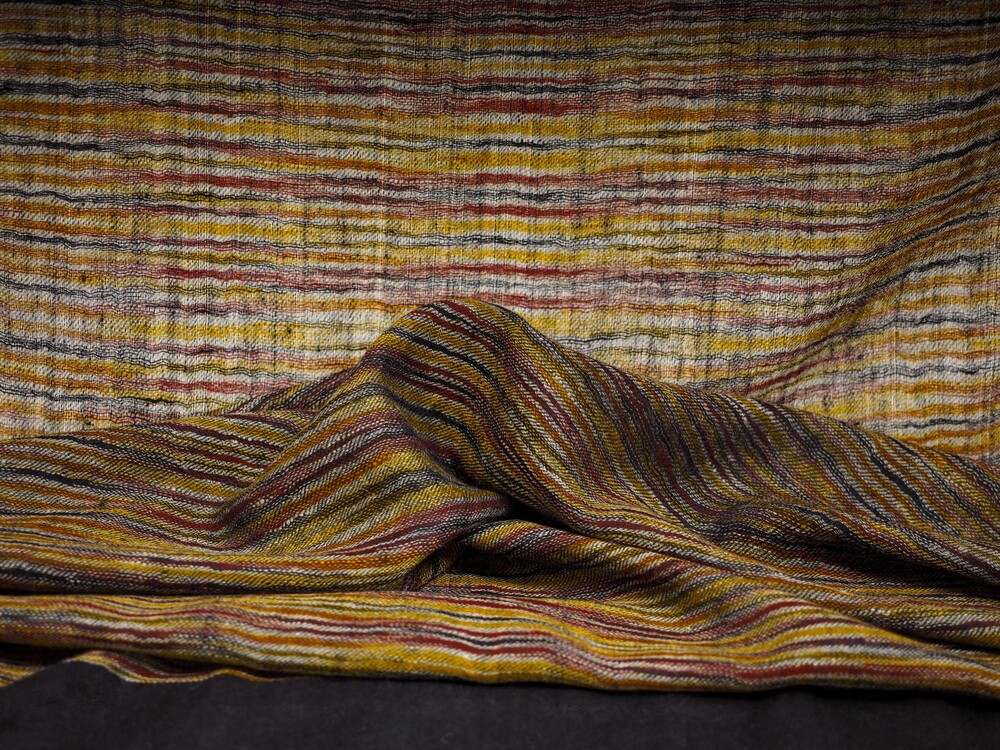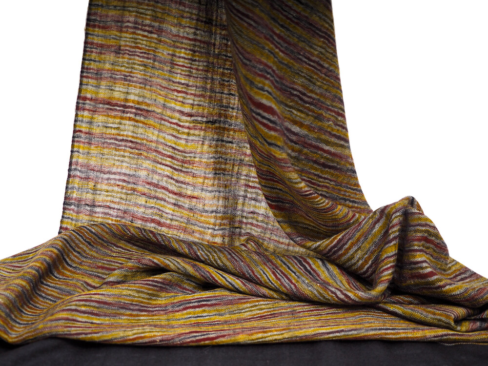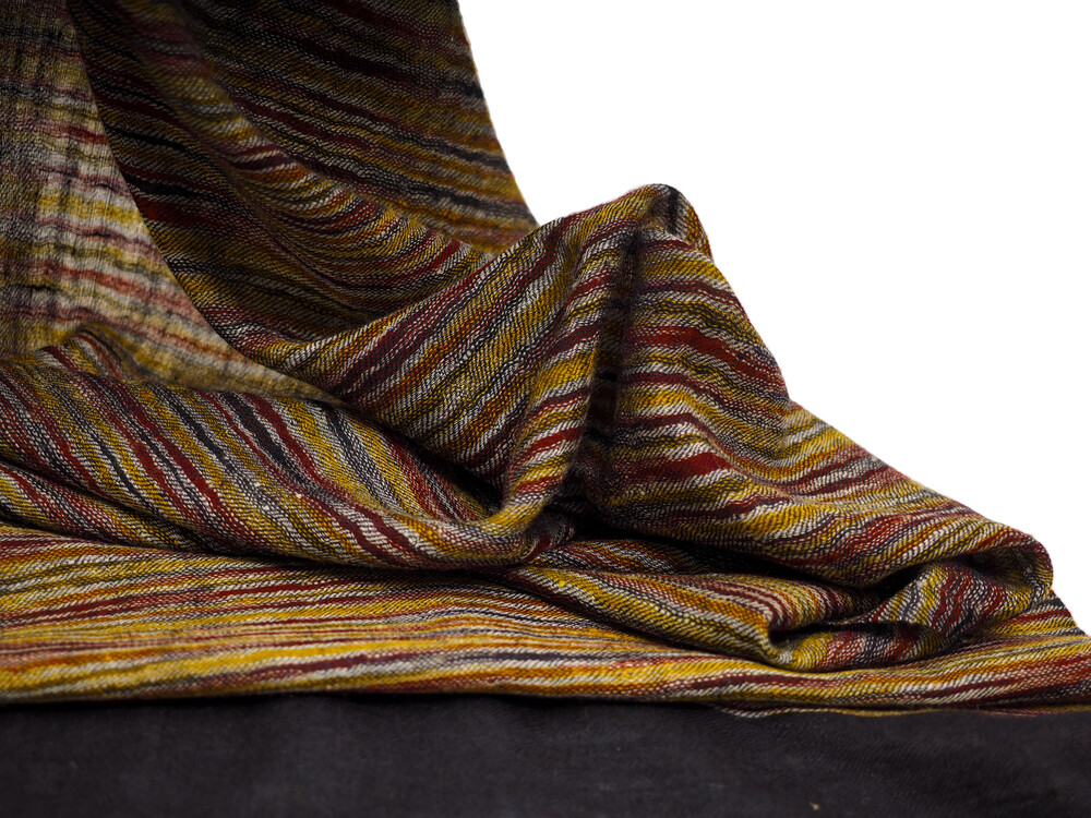 여러 컬러로 천연 염색된 턱과 목부위의 털을 마치 수를 놓듯이 컬러를 바꾸어가며 직조한 예술 작품같은 제품입니다. 씨실과 날실의 환상적인 조화가 만들어내는 아름다움이 감동을 안겨줍니다.