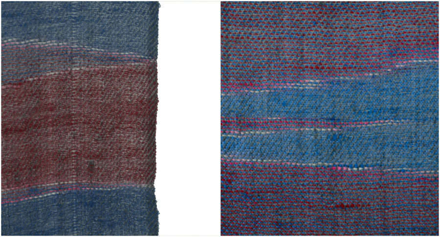 여러 컬러로 천연 염색된 턱과 목부위의 털을 마치 수를 놓듯이 컬러를 바꾸어가며 직조한 예술 작품같은 제품입니다. 씨실과 날실의 환상적인 조화가 만들어내는 아름다움이 감동을 안겨줍니다.
