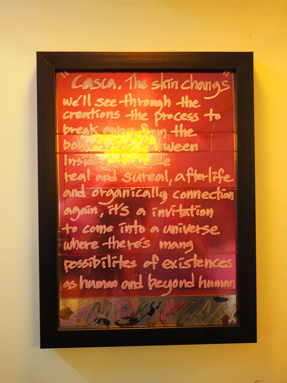 "Casca, The skin changes 변태“에서 우리는 그녀의 창작물을 통해 내면과 외면, 현실과 초현실, 이승과 사후세계를 탈피한 후다시 유기적으로 연결되는 과정을 보게 될 것입니다.