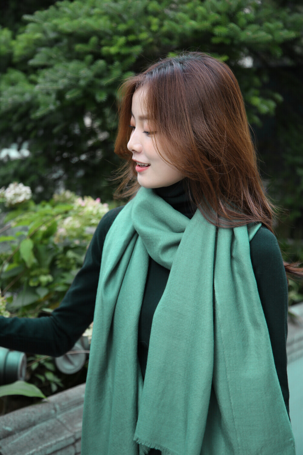 숄 사이즈의 제품은 길이는 같고 폭이 1.5배 넓은 200x105cm의 풍성한 사이즈입니다.
