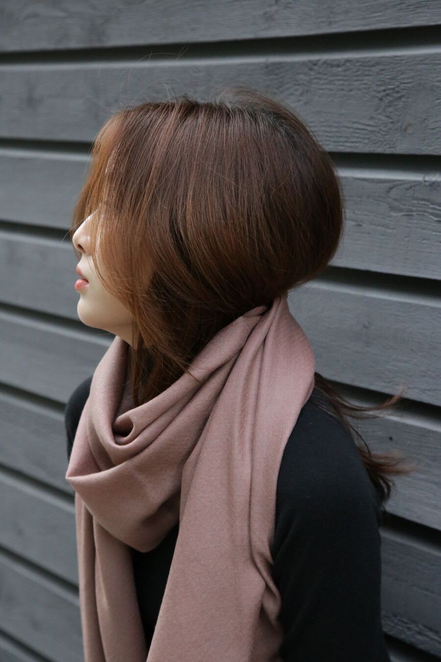 숄 사이즈의 제품은 길이는 같고 폭이 1.5배 넓은 200x105cm의 풍성한 사이즈입니다.